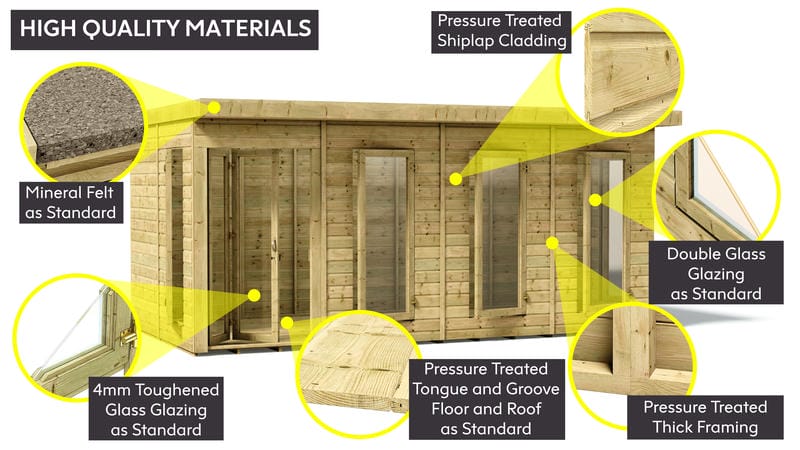11mm Tongue and Groove Floor and Roof are included as Standard. Upgrade to 19mm Floor thickness.